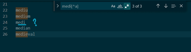 Important:,Important!orImportant,.[AEIOUaeiou] searches for one of the letters in this set.